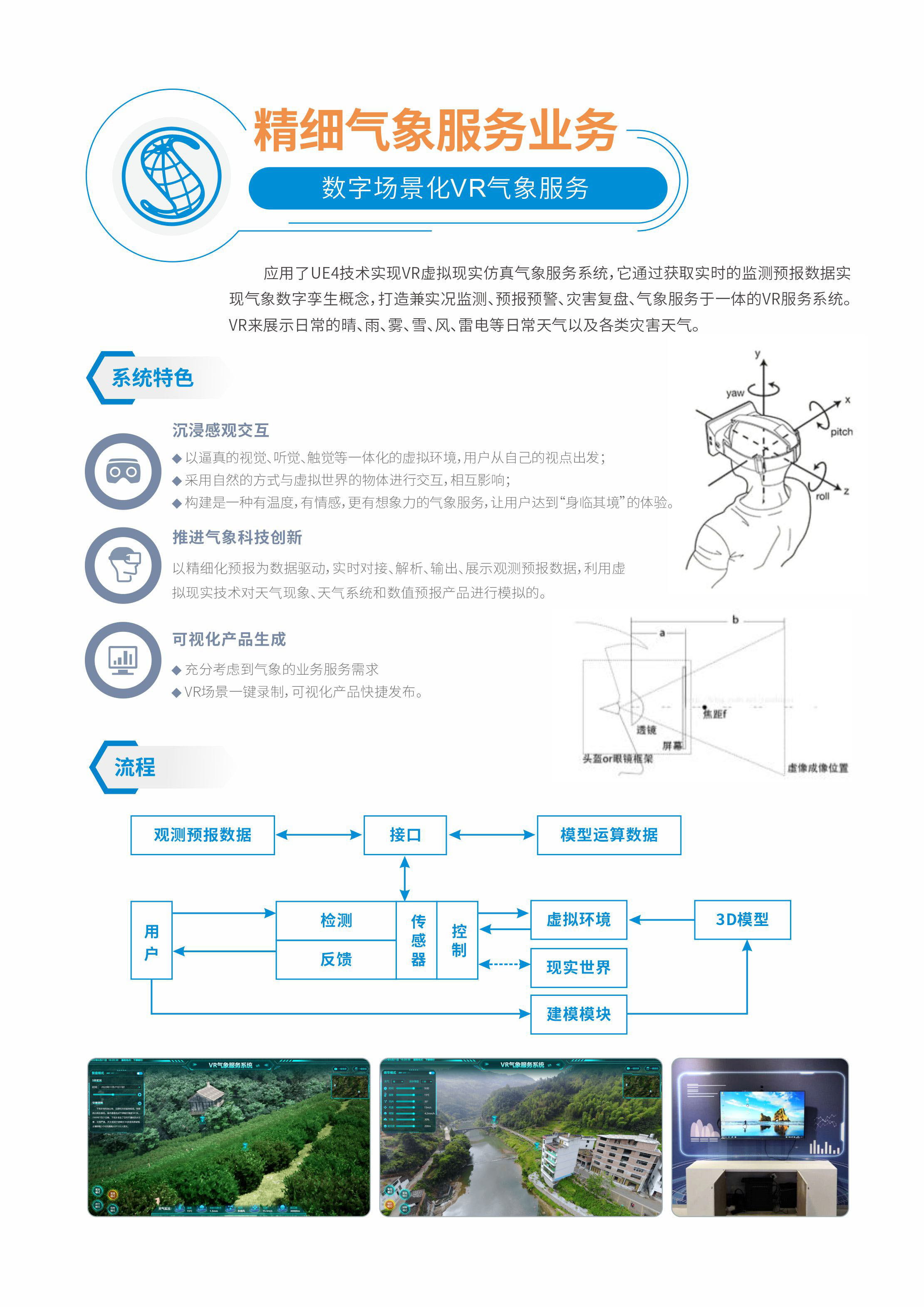 应用了UE4技术实现VR虚拟现实仿真气象服务系统,它通过获取实时的监测预报数据实现气象数字孪生概念,打造兼实况监测、预报预警、灾害复盘、气象服务于一体的VR服务系统