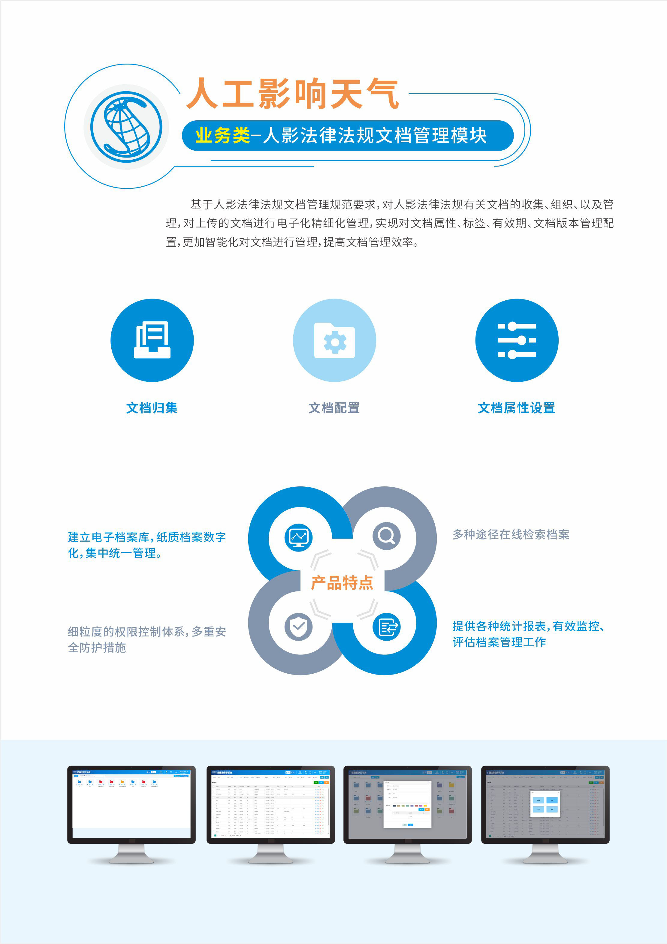 基于人影法律法规文档管理规范要求,对人影法律法规有关文档的收集、组织、以及管理,对上传的文档进行电子化精细化管理,实现对文档属性、标签、有效期、文档版本管理配置,更加智能化对文档进行管理,提高文档管理效率